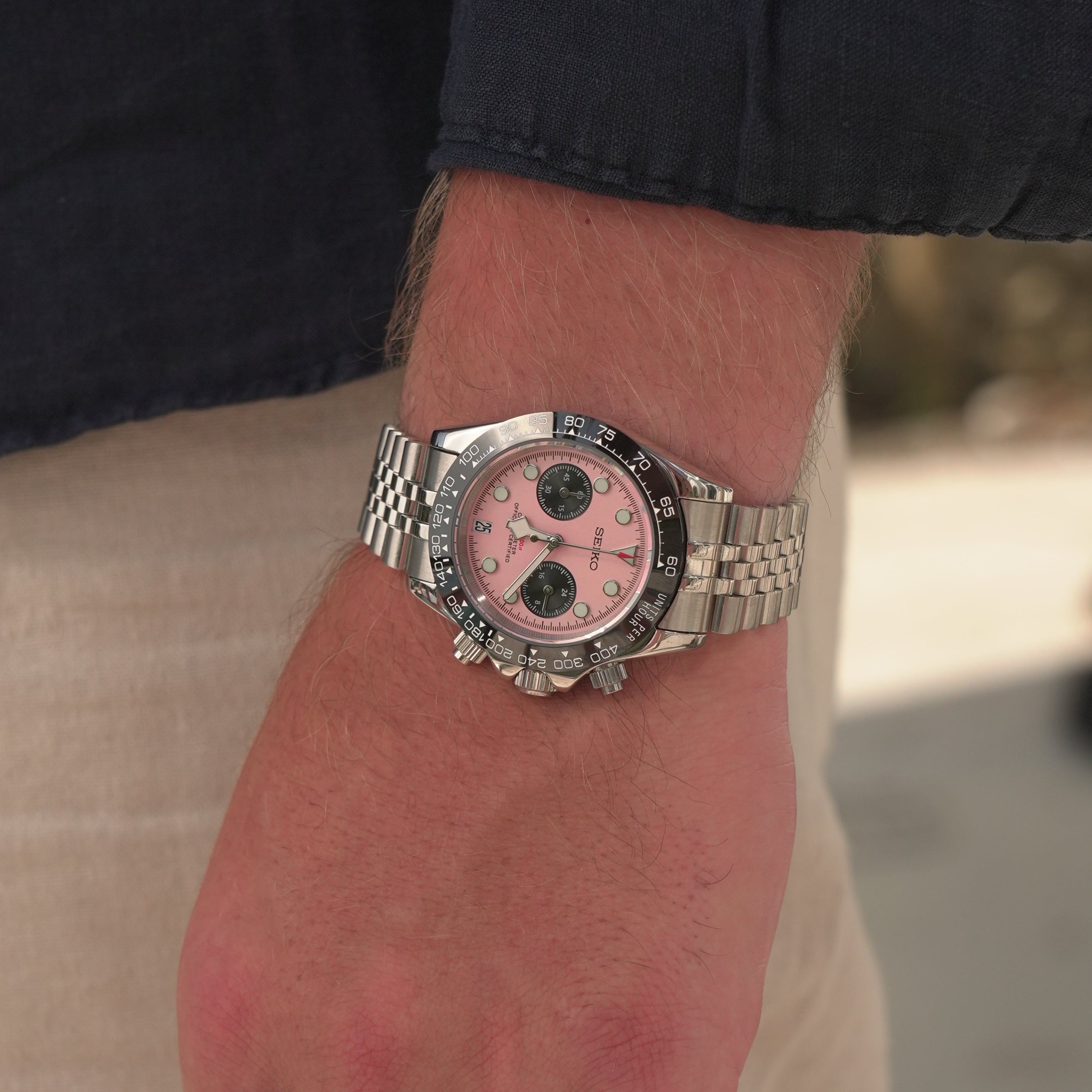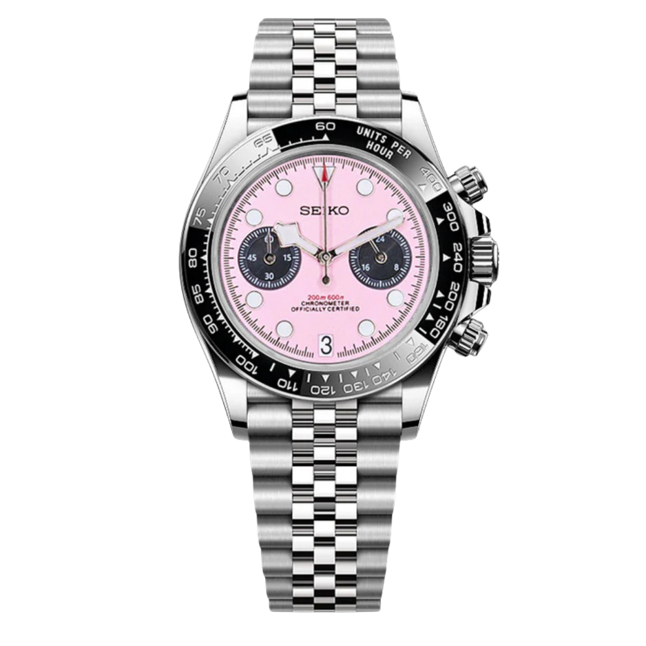 The TUDEIKO line is built around VK63 chronograph models with distinctive colorways such as Miami Pink and White Oyster. Customers describe the designs as modern, vibrant, and highly eye-catching.